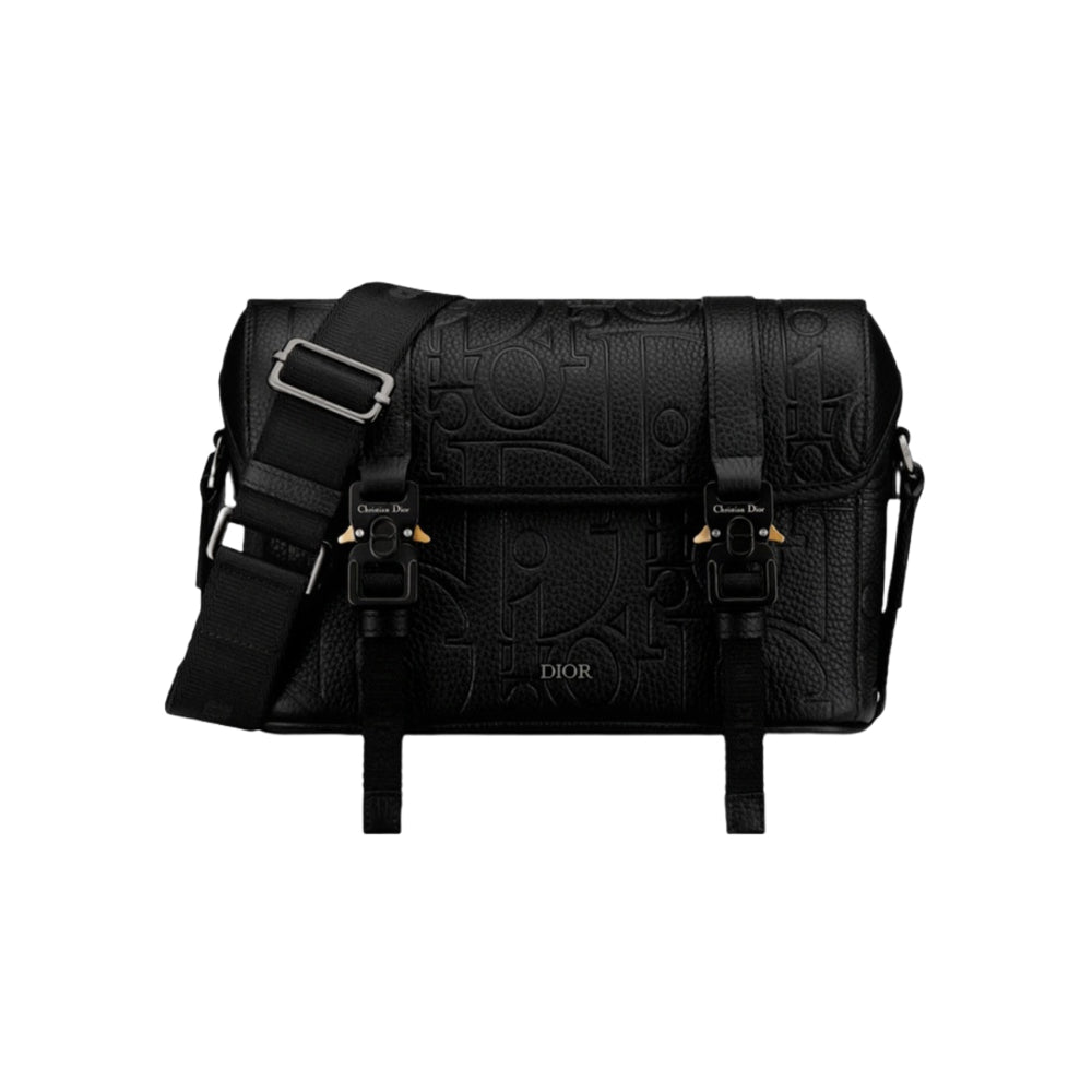 디올 디올 히트 로드 메신저백 플랩 디올 그래비티 레더 그레인드 카프스킨 블랙