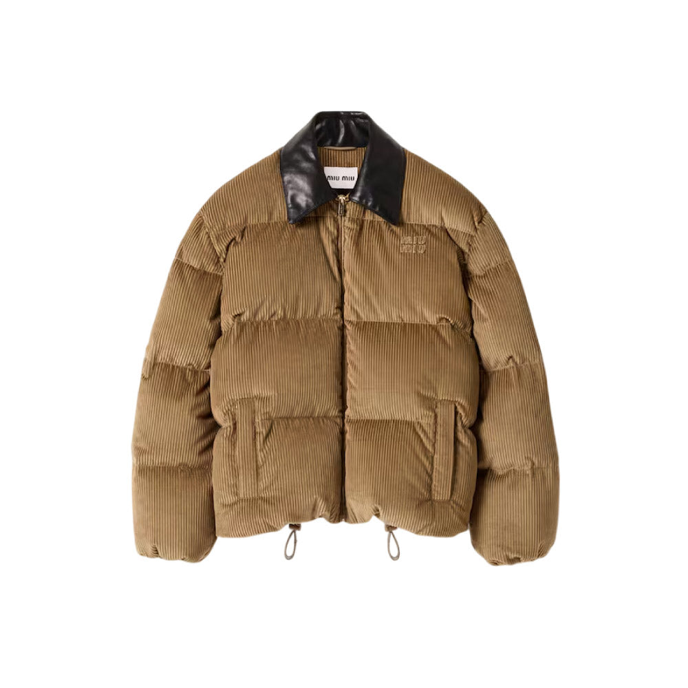 미우미우 코듀로이 및 나파 가죽 다운 자켓 베이지