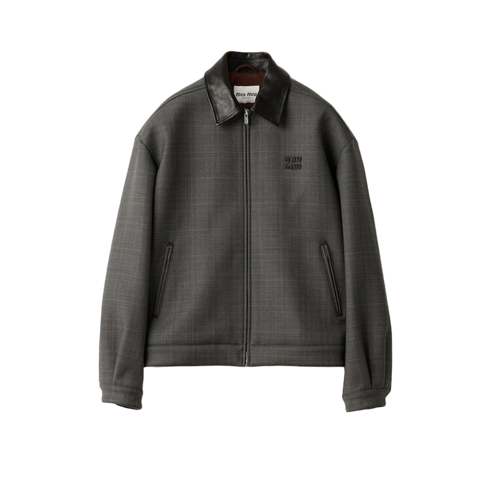 미우 미우 프린스 웨일스 체크 앤 본디드 저지 블루 자켓 슬레이트 그레이(국내배송)(당일배송)