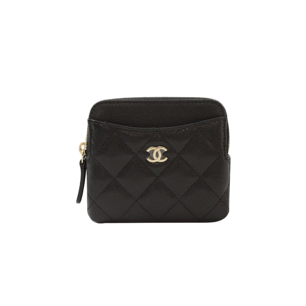 샤넬 클래식 지퍼 코인 카드 홀더 그레인드 샤이니 카프스킨 블랙 금장