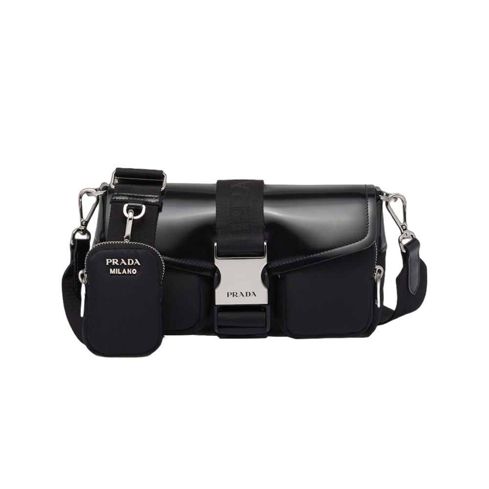 프라다 포켓 나일론 브러쉬드 레더 백 블랙
