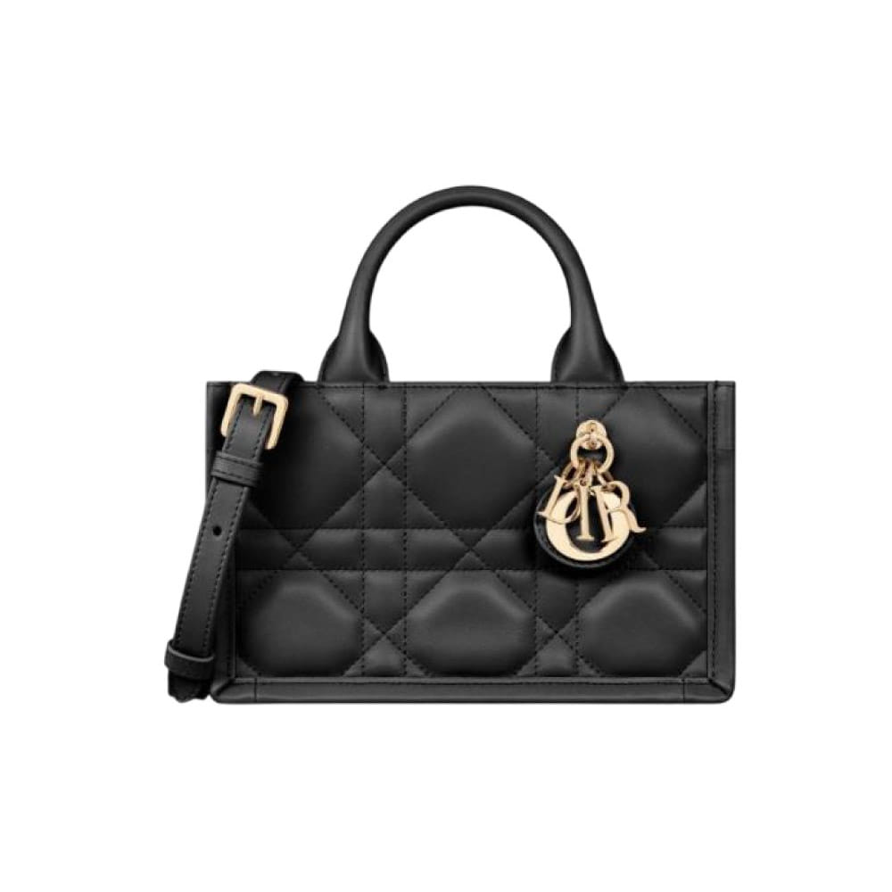 디올 미니 스트랩 북 토트 매크로까나쥬 카프스킨 블랙