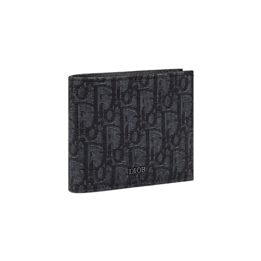 디올 오블리크 자카드 컴팩트 반지갑 블랙